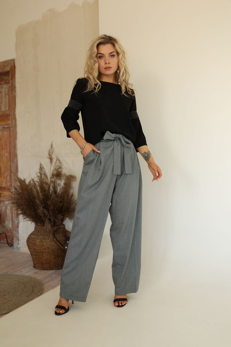 Блузка с модной отделкой по рукавам. Застежка по горловине спинки на пуговку.