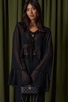 M&S Cotton Frill Neck Long Sleeve Shirt blue