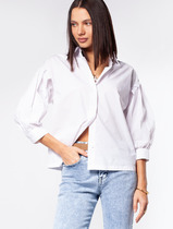Глубокий V-образный вырез, украшенный воланами, подчеркивает изысканно-романтичный характер блузы. Эту историю дополняет игра завязок: их можно распустить для непринуждённой элегантности или завязать на шее, чтобы подчеркнуть трогательную женственность.