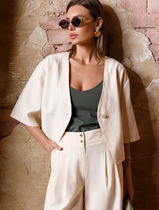 Блуза свободного кроя. Выполнена из лёгкого натурального полотна рами. Вырез горловины V-образный. По переду регулируемая кулиска. Рукав цельнокроеный. Длина рукава от горловины 46 см. Длина спинки 72 см
