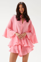 Блуза свободного кроя. Выполнена из легкого натурального полотна- рами . По переду и по задней части фигурная кокетка. По переду на кокетке тесьма-завязки (завязки функциональные). Рукав втачной, немного спущен. Низ рукава на резинкей. Длина по спинке 63 см, длина рукава 52 см.