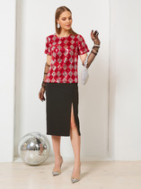 Блузка свободного покроя с втачным рукавом 7/8 длины с патой, воротник рубашечный на стойке, с планками под застёжку на пуговицы.