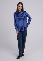 Блузка из хлопкового шитья с V-образным вырезом и втачным рукавом 3/4 со сборкой по окату и внизу на резинке. Полочка с центральной застежкой на завязки. По полочке и спинке по линии талии вставлен волан со сборкой и фигурным низом. Блузка на подкладке из хлопка.