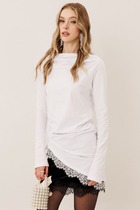 Блузка выполнена из тонкого трикотажного полотна в комбинации с отделочной тканью в пайетки.