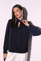 Блузка женская, свободного кроя, длиной ниже бедра. По переду V-образная горловина, обработана планками с втачными концами. Рукава цельнокроеные, короткие.