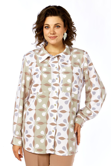 Совместные покупки Нижний Тагил Женская одежда Блузки, рубашки — Блуза Элль стиль 2395а бежевый принт