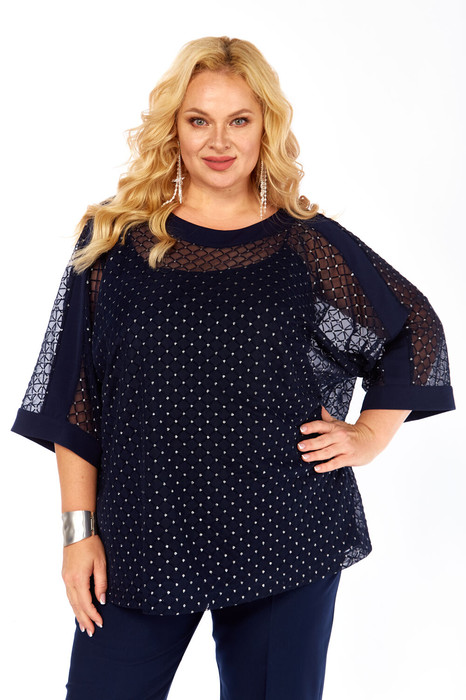 Праздничная элегантная блузка полуприлегающего силуэта, выглядит эффектно, прекрасно подойдет для вечерних мероприятий. Горловина аккуратной округлой формы. Рукав втачной, свободный, длина 7/8. В боковых швах предусмотрены разрезы. Топ входит в комплект.