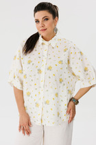 Блузка женская, повседневная. Выполнена из хлопчатобумажной ткани, свободного силуэта. Горловина фигурной формы. По переду нагрудный карман. Спинка цельная. Рукава спущенные, со складками по верхнему и нижнему срезу, на манжете с застежкой на одну петлю и пуговицу. Низ изделия фигурный, с перепадом длины.