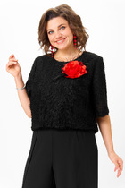 Блуза из тонкой ткани с атласным эффектом, свободного силуэта с V-образным вырезом. Это довольно глубокий вырез, который прекрасно подчёркивает декольте и линию шеи. Застежка на навесные петли и пуговицы. Рукава длинные объёмные втачные заканчиваются широкой манжетой с застёжкой на навесные петли с пуговицами.