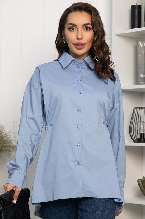 Рубашка свободного кроя в серо-голубом цвете — это сочетание современного стиля и практичности. Воротник-стойка придаёт ей элегантность, а манжеты на рукавах обеспечивают удобство. Пуговицы в тон ткани создают аккуратный и гармоничный образ. Особенность этой модели — дополнительные пуговицы на талии спереди и боковые петельки, которые позволяют подчеркнуть силуэт. Их можно застёгивать по мере необходимости. Это идеальный выбор для тех, кто хочет выглядеть стильно и чувствовать себя комфортно в повседневной одежде.