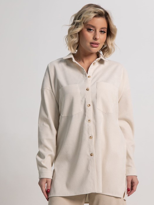Стильная вельветовая молочная рубашка свободного кроя, которая обязательно займет достойное место среди базовых вещей вашего гардероба. Минималистичный дизайн с классическим воротником и пуговицами придает ей элегантный и аккуратный вид. Однотонная расцветка легко сочетается с разнообразными предметами гардероба, создавая гармоничные и стильные образы для повседневной носки и деловых случаев.