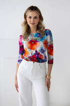 Блузка женская классическая свободная. Выполнена из приятного материала. Прямого свободного силуэта. Воротник рубашечного типа отложной. Рукава втачные 3/4 с манжетой и петлей и пуговицей, с возможностью регулировки. Застегивается на петли и пуговицы спереди на планке. Низ блузки асимметричный. Сзади слегка длиннее переда. Подходит как рубашка строгая на работу или прогулку. Отличный вариант для лета или весны.          Параметры модели талия-68, бедра- 94, бюст-88, рост 172cm.
