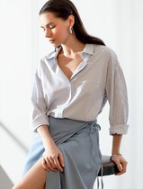 Рубашка прямого силуэта с фигурным низом. Выполнена застежка на петли и пуговицы. По горловине стояче-отложной воротник с отрезной стойкой. По спинке кокетка и склада на свободу движения. Рукав рубашечного кроя с манжетой по низу.