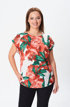 Блузка женская прямого силуэта, с втачным рукавом. Линия плеча слегка спущена. Застежка центральная на 8 петель и пуговиц. По горловине отложной воротник на стойке. Спинка с кокеткой и встречной складки из-под кокетки. Рукав длинный со сборкой по низу, на манжете с застежкой на петлю и пуговицу. В боковых швах обработаны разрезы.