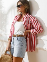 21.04 Vilatte Блузка свободного силуэта в полоску из эластичного хлопка D29.271