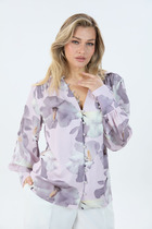 Блузка из плательно - блузочной ткани свободного силуэта. Спинка с кокеткой и встречной складкой. По переду центральная застежка на кнопки, сверху накладные карманы с клапанами. Втачной рукав с отстегивающейся нижней частью. По низу рукава манжет с кнопкой. Воротник рубашечный со стойкой.