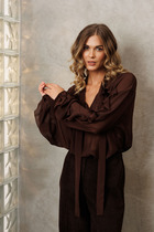 Низ рукава с притачной манжетой из кружева, застегивающийся на 4 петли и пуговицы.
