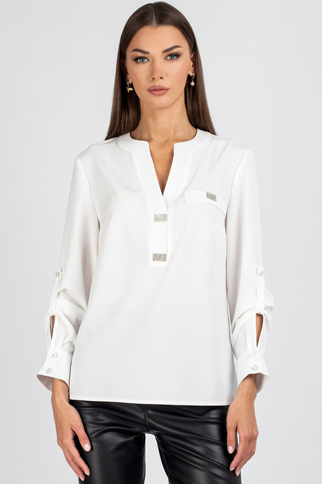 Женская блузка полуприлегающего силуэта с элегантными деталями.