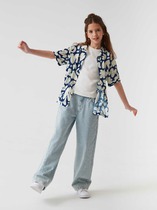 Трикотажный блуза из линейки VAY KIDS школа. Отложной воротничок, застежка на пуговицы с ажурной отделкой.