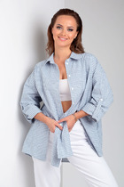Базовая блузка из шифона, свободного кроя. Рукав длинный, втачной, с резинкой по низу. Особую оригинальность этой блузке придает бант на горловине. Эту нарядную блузку можно комбинировать и с юбкой, и с брюками.