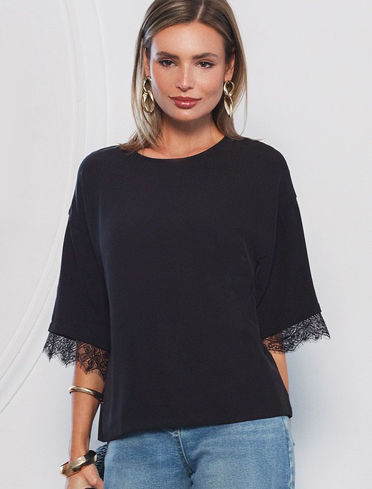 — АКЦИЯ 8 марта! Блузка свободная из креп-шифона с кружевом