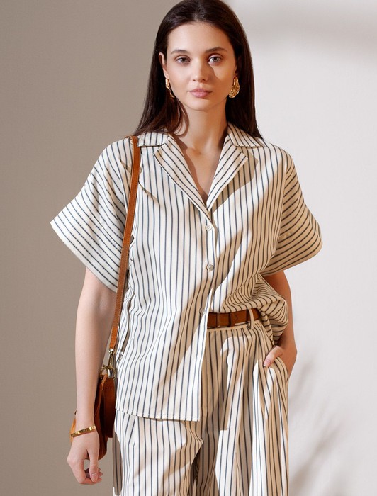 Совместные покупки Нижний Тагил Женская одежда Костюмы, комплекты — Блузка в полоску с цельнокроеным коротким рукавом из легкого хлопкового поплина