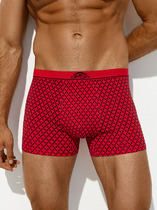Мужские трусы-боксеры со средней линией талии, открытой брендированной резинкой и праздничным принтом.
