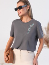 Нарядная футболка с принтом пайетками из премиального хлопка с эластаном