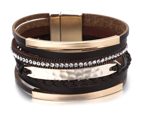 Браслет, арт.631402 Бижутерия 0, 0 гр., кожа , сталь , стекло