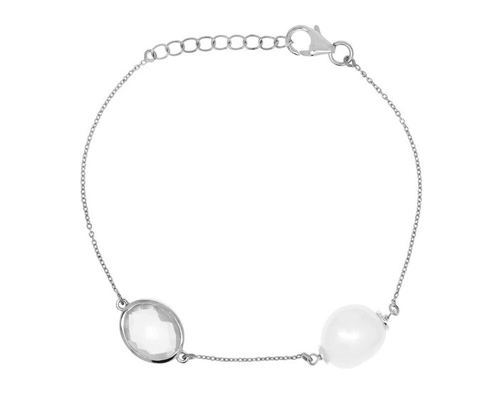 Браслет, арт.649580 Серебро Серебро 925, р. 18-21, 5,26 гр., жемчуг барочный , розовый кварц