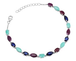 Браслет из серебра изумруд берилл, рубин корунд, сапфир корунд, Мелодия