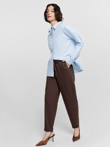 Брюки из плотного костюмного крепа с высокой посадкой. В боковых швах предусмотрены функциональные карманы. Застегивается изделие на молнию и пуговицу. Комплектуется широким поясом с пряжкой.