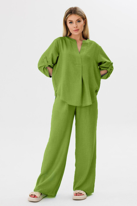 Брюки палаццо свободного кроя с притачным поясом на резинеке. В боковых швах карманы.