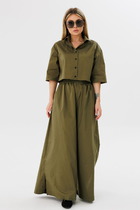 Брюки классического покроя с завышенной линией талии, с боковыми функциональными карманами по переду, с притачным поясом, в который вшиты две эластичные ленты по спинке .