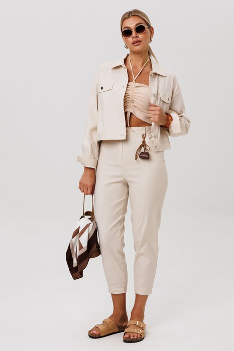 Брюки можно носить вместе с жакетом 1565.1 и создать цельный образ, или по отдельности, комбинируя с другими вещами. Брюки станут прекрасной основой для множества луков - от нежных и женственных до смелых и дерзких.