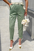 Брюки женские облегающего силуэта, расклешенные к низу, выполнены из костюмной ткани коричневого цвета. Характеристика: на задних частях брюк обработаны карманы в рамку с листочкой, обработаны таллиевые вытачки и заутюжены и отстрочены стрелки. Передняя часть брюк состоит из двух деталей с центральным швом по линии стрелки и отделочными строчками. Застежка молния брючного типа с гульфиком и откоском. Пояс стабильный застегивающийся на петлю, пуговицу. Длина брюк по боковому шву 114 см.