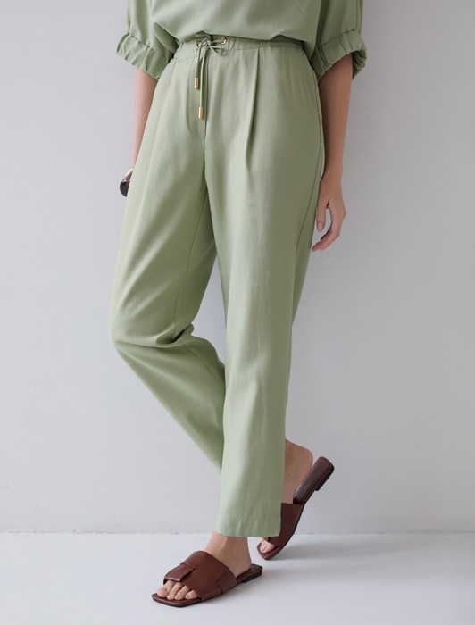 Состав: 76%Лиоцелл (Вис) 24%ПЭБрюки бананы светло-зеленого цвета выполнены из плотного лиоцелла. Лиоцелл это более дорогой и экологичный вариант вискозы, очень прочный и шелковистый. Модель отличается свободным кроем в бедрах и заужены к щиколотке. Удобный пояс на мягкой на резинке обеспечивает идеальную посадку по фигуре и гарантирует комфорт. Свободные брюки с высокой посадкой и аккуртными защипами создают идеальный силуэт и будут базовым элементом гардероба. Летние брюки отлично сочетаются с монохромным верхом, с ними можно создавать эффектные наряды как на выход, так и для ежедневных рабочих дел или простых прогулок.