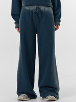 Низ брюк обработан эластичной манжетой, что позволяет создать эффект нависания по низу.