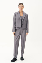 Брюки прямые,классические, с заутюженными стрелками,по переду обработаны карманы с отрезным бочком,застежка на тесьму-молнию и 1 пуговицу.На задних половинках обработаны вытачки и имитация карманов с листочкой, пояс в брюках притачной. Длина брюк от талии по боковому шву 100 см. К брюкам рекомендуем жакет 203-арт. 2 78 22 или 205-арт. 2 80 22