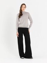 Брюки-джинсы немного заужены к низу. На притачном поясе со шлёвками, застежкой-гульфик. Пояс застегивается на петлю-пуговицу. По переду карманы и рельефы. По спинке кокетка, накладные карманы и рельефы.