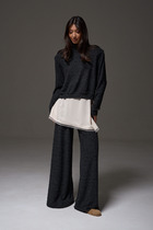 Стоит учитывать слабую растяжимость ткани и зауженность модели в бедрах.