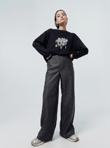 Брюки классические с стрелками, складками по переду, слегка зауженные к низу. По переду прорезные карманы с листочкой. Застежка на молнию и петлю с пуговицей. Пояс отрезной с вставкой эластичной тесьмы по спинке. Длина по боковому шву с учетом пояса - 98 см.