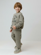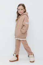 Брюки для мальчика из трикотажного полотна "футер-двунитка" на притачном поясе с эластичной тесьмой внутри, декоративными вставками в боковых швах и карманами, обработанными в соединительных швах передних половин с декоративными вставками. Нижние срезы брюк обработаны с эластичной тесьмой. По швам втачивания вставок и входам в карманы настрочены отделочные строчки. Через петлю пояса продет шнрок, позволяющий регулировать степень прилегания изделия по талии.