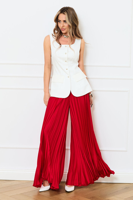 Брюки- гофре расширенного силуэта, с отрезным поясом, без застежки, верх брюк присборен на резинку. Брюки без боковых швов.