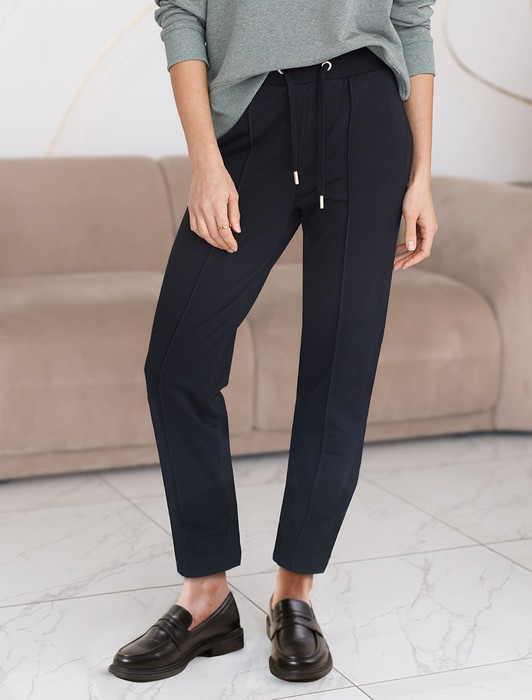 Состав: 75%Хлопок 20%ПЭ 5%ПУ Плотность: 240 Г/м2Брюки выполнены из эластичного футера-двухнитки. Модель дополнена застроченными стрелками, что визуально вытягивает силуэт. Эластичный пояс на резинке с хлопковым шнурком и металлической фурнитурой. Брюки сочетаются в костюме с футболкой D49.031 и бомбером D49.038