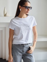 Нарядная футболка с принтом из премиального хлопка с эластаном
