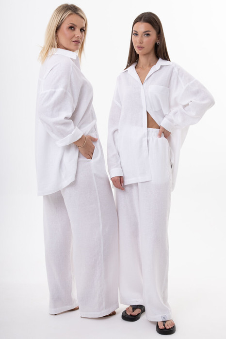 Универсальный дизайн подходит для офиса, прогулок или путешествий, легко комбинируется с базовыми футболками, рубашками и объемными кардиганами. Выбирайте брюки из льна с вискозой — ваш надежный спутник в мире современной моды, где ценится экологичность, комфорт и безупречное европейское качество.