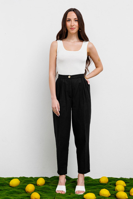 Брюки-бестселлер — зауженные, со стрелками, задающими четкую вертикальную линию, универсальной укороченной длины. Такую модель можно стилизовать как для вечера, так и для повседневных образов — с изящными босоножками на каблуке или туфлями на плоской подошве.