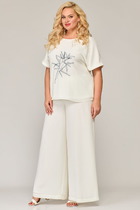 Широкие брюки выполнены из микровельвета — мягкой и приятной на ощупь ткани. Модель подходит на каждый день, офиса и торжественных мероприятий. Брюки без карманов имеют потайную молнию, что обеспечивает аккуратный внешний вид. Прямой крой и свободная посадка делают их удобными для больших размеров. Материал сохраняет форму после стирки, уход за изделием прост: бережная стирка при температуре 30 градусов. Брюки сочетаются с разными стилями одежды, подходят для создания делового и повседневного образа.