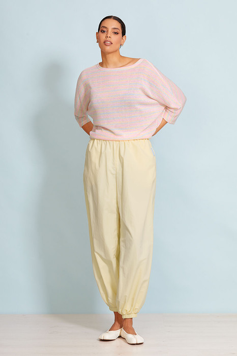 Брюки-“Алладины” выполнены из шуршащего хлопка.  Главный тренд сезона 2026.